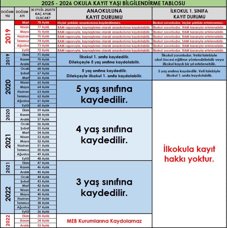 2025-2026 Eğitim Öğretim Yılı kesin kayıtları başladı. Kesin kayıt için velilerimizin okulumuza gelip, kayıt formunu almalarını rica ederiz.